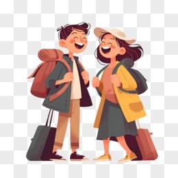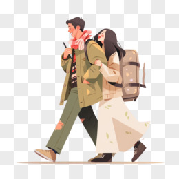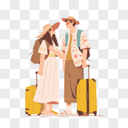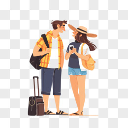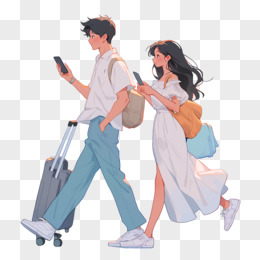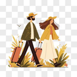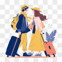 手绘情侣旅游人物形象免抠元素