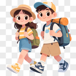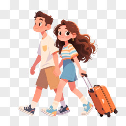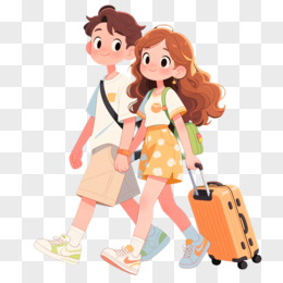 手绘插画情侣去旅游免抠素材