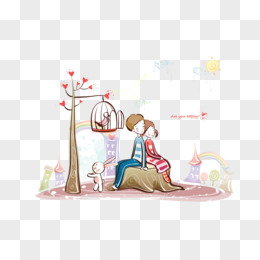 手绘情侣恋爱为爱欢呼场景免抠元素