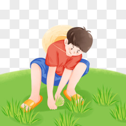 卡通手绘小朋友手拿放大镜观察植物昆虫免抠元素