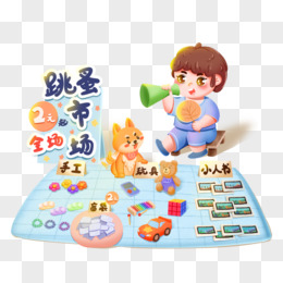 手绘跳蚤市场小男孩摆地摊元素
