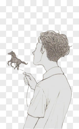 手绘冬季主题之拿着雪球准备堆雪人的男孩