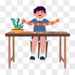 手绘线描剪纸风男孩女孩赏花灯免抠元素