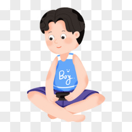 手绘光脚丫在海边玩耍儿童小男孩素材元素