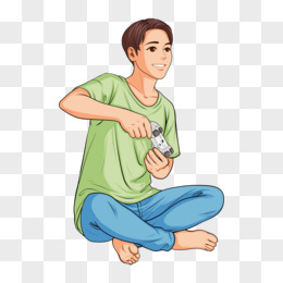 卡通手绘免抠男孩打电动手柄游戏元素