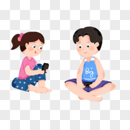 卡通手绘免抠男孩女孩一起玩游戏元素