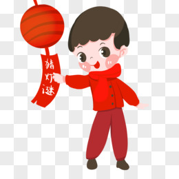 卡通手绘元宵节男孩猜灯谜免抠元素