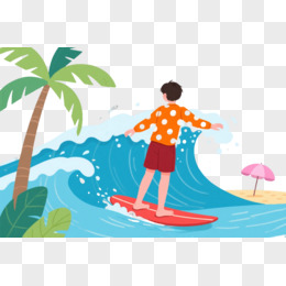 橙波点少年冲浪卡通手绘元素