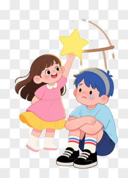 粉裙女孩举星与笼中少年卡通手绘元素
