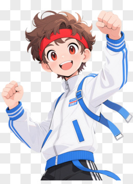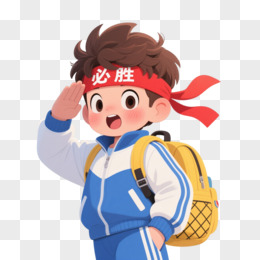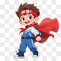 红带加油少年卡通手绘元素