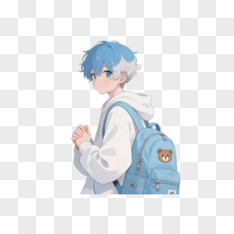 蓝发少年卡通手绘元素