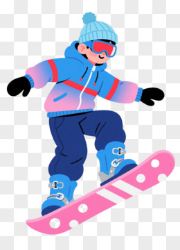 蓝粉渐变滑雪少年卡通手绘元素