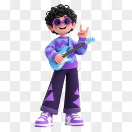 紫蓝波浪毛衣卷发少年卡通手绘元素
