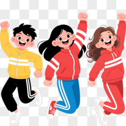 三少年欢呼跳跃卡通手绘元素