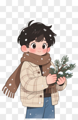 黑发少年卡通手绘元素