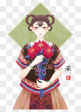 手绘朝鲜族服装男生跳舞打鼓元素二
