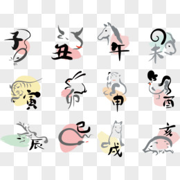 一组水墨风手绘十二生肖合集系列二免抠素材