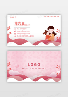 粉色手绘插画剪纸风格亲子阅读体验中心名片