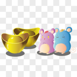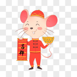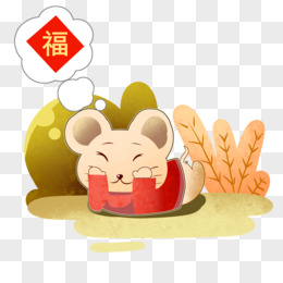 手绘过年主题之拿元宝和祝福语的鼠宝宝