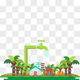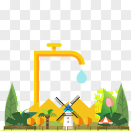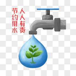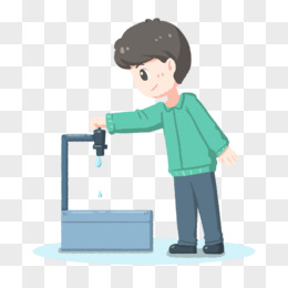 卡通手绘免抠男孩浪费水资源开着水龙头免抠元素