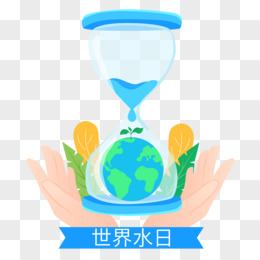 手绘创意世界水日沙漏之爱护水资源插画素材