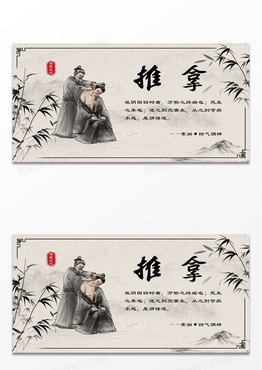 中国风水墨画中医养生推拿理疗治疗手绘插画展板设计
