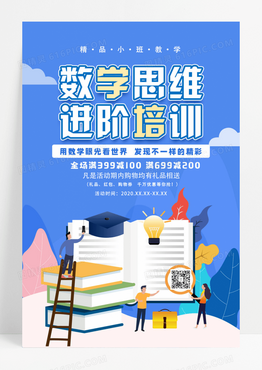 蓝色手绘数学思维进阶培训数学培训海报设计