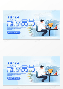 蓝色时尚商务手绘数字改变生活程序员节展板
