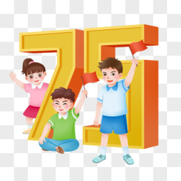 手绘小朋友结合数字75插画元素