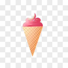 手绘卡通小清新可爱夏天清凉美味冰淇淋甜筒解暑粉红色创意元素免扣