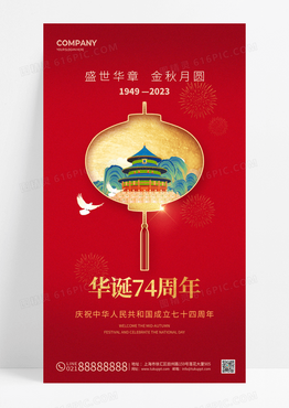 国庆节灯笼柿子剪纸国潮手绘插画天坛中式建筑海报国庆节国庆