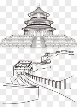 手绘国朝微景观党建代表建筑长城天坛嘉兴红船素材
