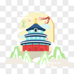 手绘国潮风北京旅游景点天坛祈年殿元素