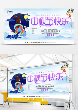 唯美创意中秋节快乐展板模板设计