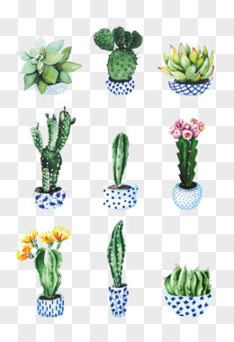 一组手绘水彩风仙人掌植物免抠元素