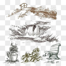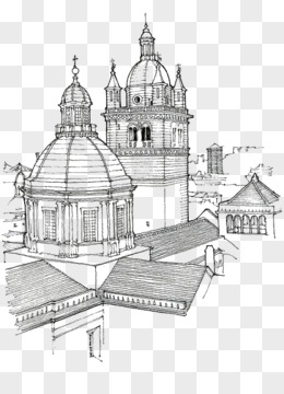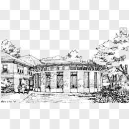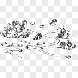 黑白线条街道 街道 建筑 房子 手绘建筑