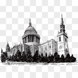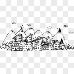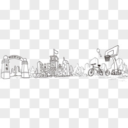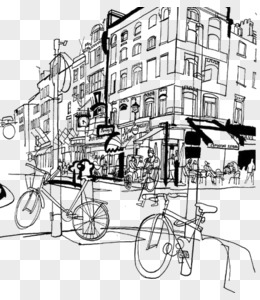 黑白线条街道 街道 建筑 房子 手绘建筑