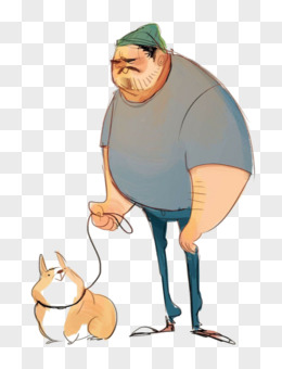 手绘遛狗大叔