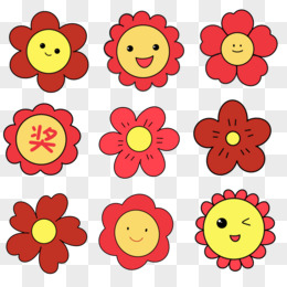 一组卡通手绘儿童小红花奖励贴纸合集元素九