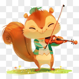 卡通手绘可爱小松鼠拉小提琴免抠元素