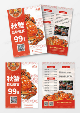 大气国潮手绘秋蟹螃蟹自助盛宴宣传单海报