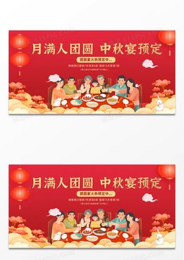 大气红色喜庆手绘中国风家宴预定中秋团圆宴展板