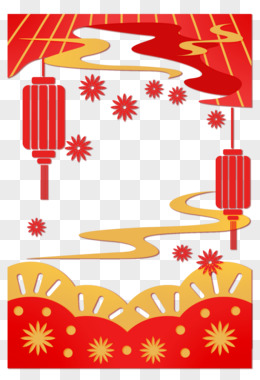 一组手绘插画新年剪纸竖版边框套图合集元素四