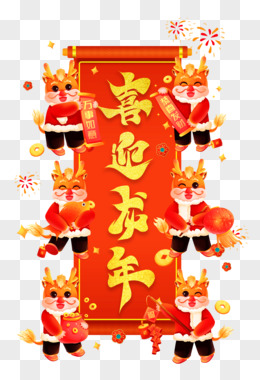 一组手绘2024龙年春节卡通喜庆贴纸素材九
