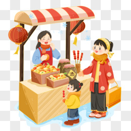 手绘新年喜庆福娃吃糖葫芦面口素材
