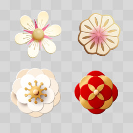 一组精美立体花瓣浮雕剪纸装饰元素
