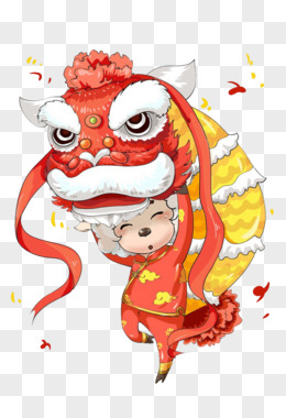舞狮子剪纸免扣图案