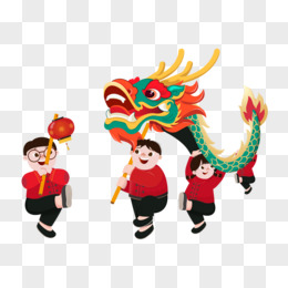 手绘卡通舞龙场景素材