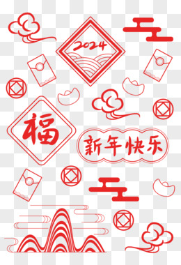 手绘卡通龙年2024新年底纹免抠元素