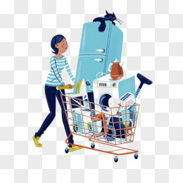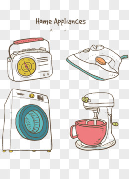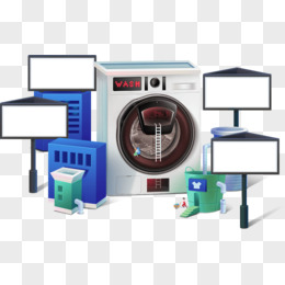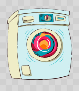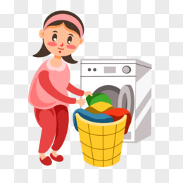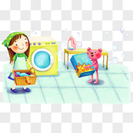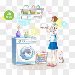 手绘卡通妈妈用洗衣机洗衣服免抠素材